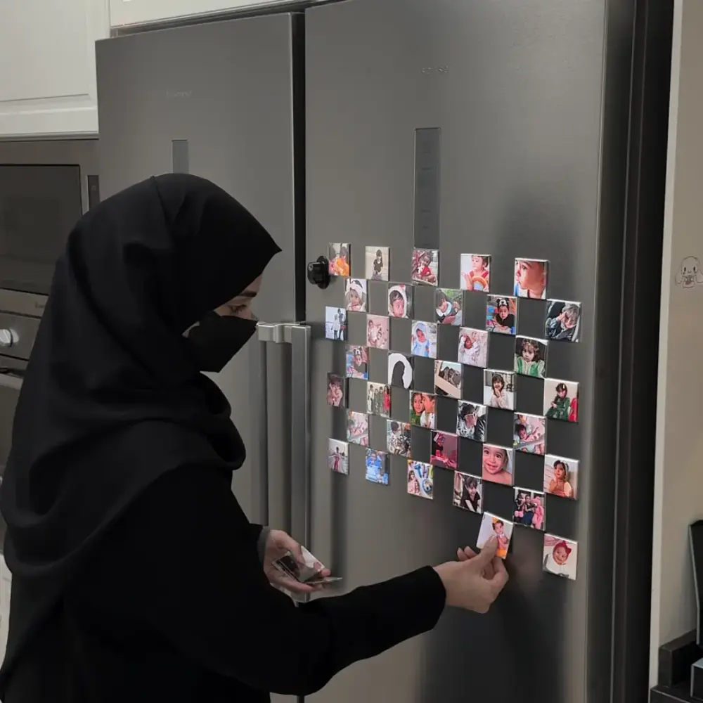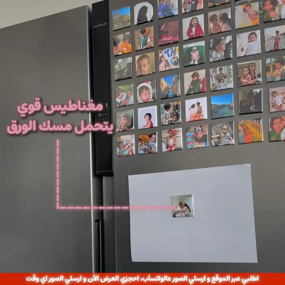 مليتِ من زحمة الصور بالجوال؟... خليها زحمة على الثلاجة! تخيلي إنك بتشوفين عيالك وذكرياتك كل يوم تفتحين فيه الثلاجة، ولو كانت هدية... راح يتذكرونك فيها كل يوم يفتحون فيه الثلاجة. الصور المغناطيسية تُصنع يدوياً بأيدي بنات سعوديات فقط.
