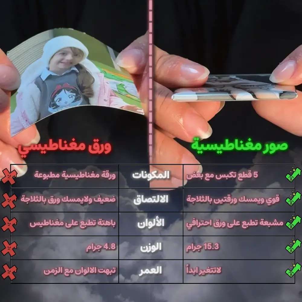إذا حابة تحولين صور جوالك لذكريات تشوفينها كل يوم على الثلاجة، أو تهدينها لشخص غالي يتكرك فيها كل يوم، هذي الصور المغناطيسية هي الحل الكيوت والأمثل! 💫